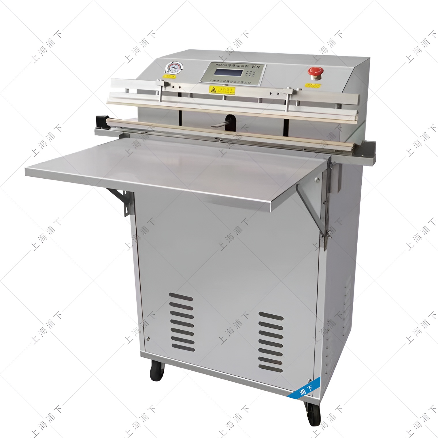本包裝機工作步驟:夾緊包裝袋→抽真空→充氮氣(選配)→熱合→冷卻→熱合結束